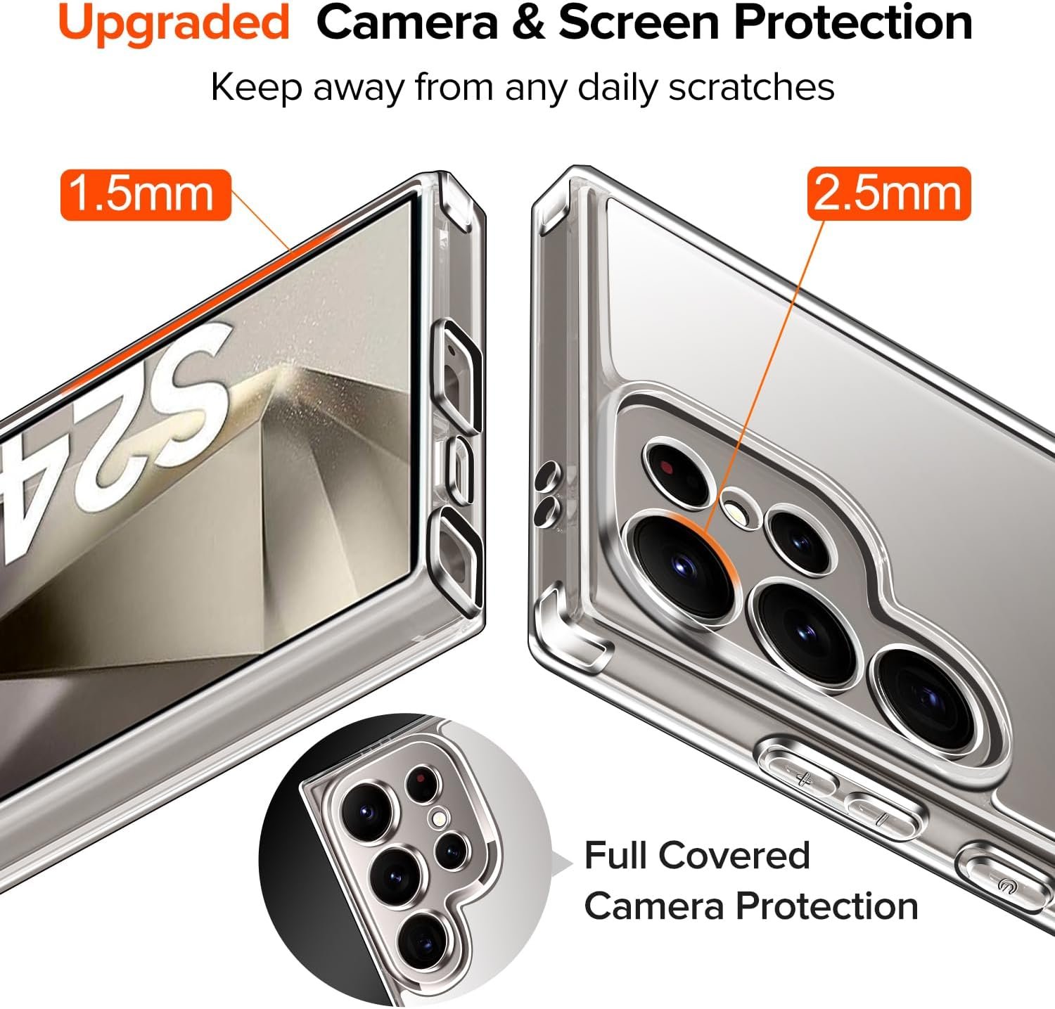 - [2 Pack Tempered Glass Screen Protector]: Included are 2-pack hardness tempered glass screen protectors designed specifically for the Samsung Galaxy S24 Ultra 5G phone case, offering protection against accidental drops. The 0.46mm tempered glass maintains 99.99% response sensitivity and remains scratch-free. The 1.8mm bezels provide additional full-body protection.